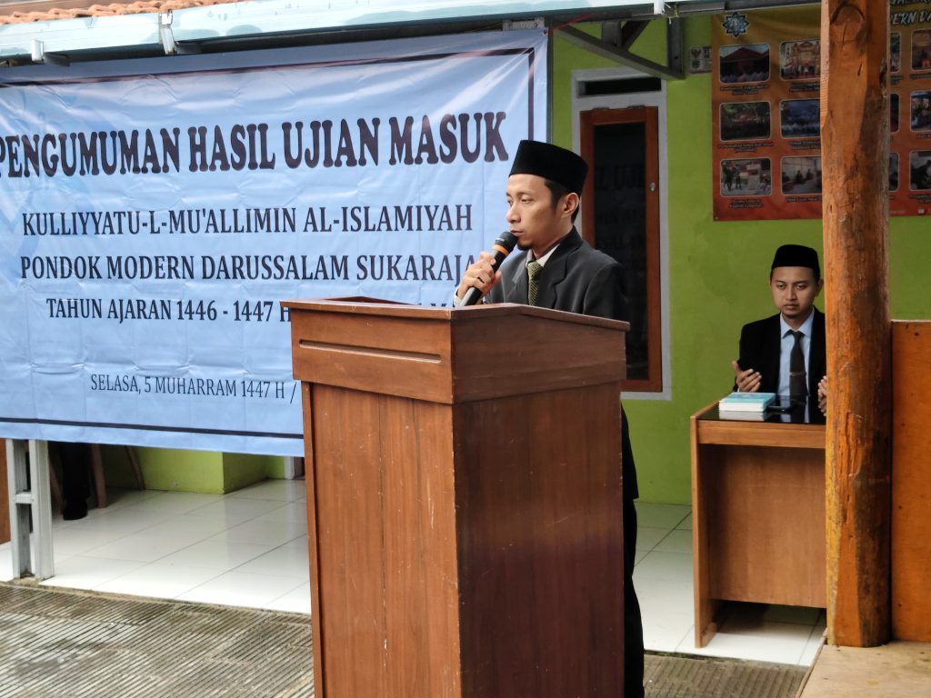 Majalengka – Suasana haru dan khidmat menyelimuti Pondok Modern Darussalam Sukaraja (PMDS) pada Selasa pagi, 1 Juli 2025. Tepat pukul 06.45 WIB, PMDS menggelar acara pengumuman hasil ujian masuk calon pelajar Kulliyyatu-l-Mu’allimin Al-Islamiyyah (KMI) gelombang kedua tahun ajaran 1446–1447 H / 2025–2026.