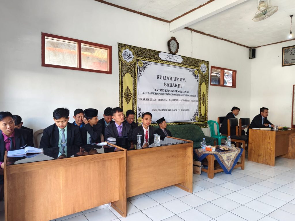 Majalengka – Suasana penuh khidmat menyelimuti aula masjid Pondok Modern Darussalam Sukaraja (PMDS) pada Ahad pagi, 24 Muharram 1447 H bertepatan dengan 21 Juli 2025. Dalam rangkaian kegiatan Kuliah Umum Babak Pertama Khutbatu-l-‘Arsy, Pimpinan Pondok Modern Darussalam Sukaraja menyampaikan kisah perjuangannya dalam merintis berdirinya pesantren yang kini menjadi tempat menimba ilmu bagi santri dari berbagai daerah.